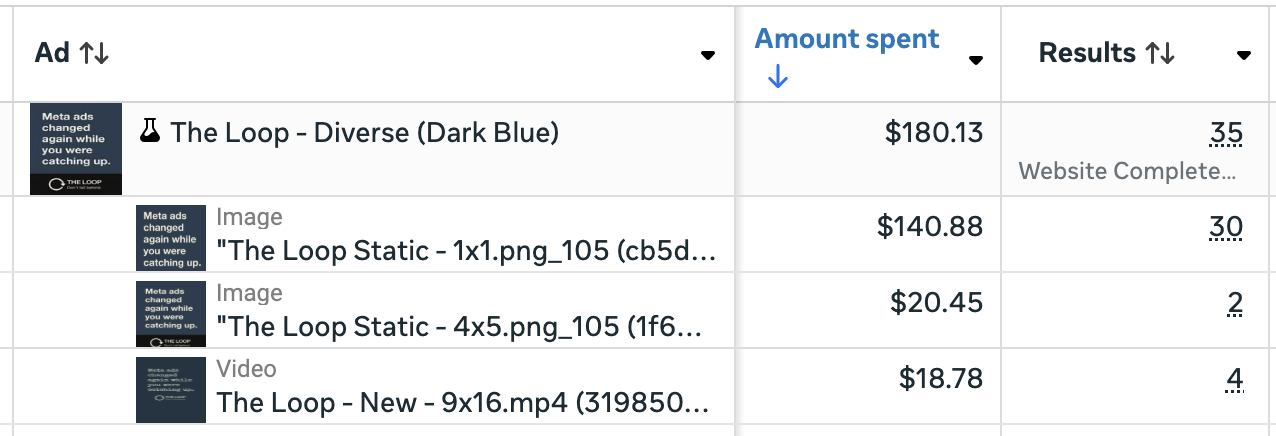 With this breakdown, Meta will generate separate rows for every particular person inventive used. In order that’s not solely the completely different codecs, however the completely different side ratios in the event you custom-made these by placement, too.