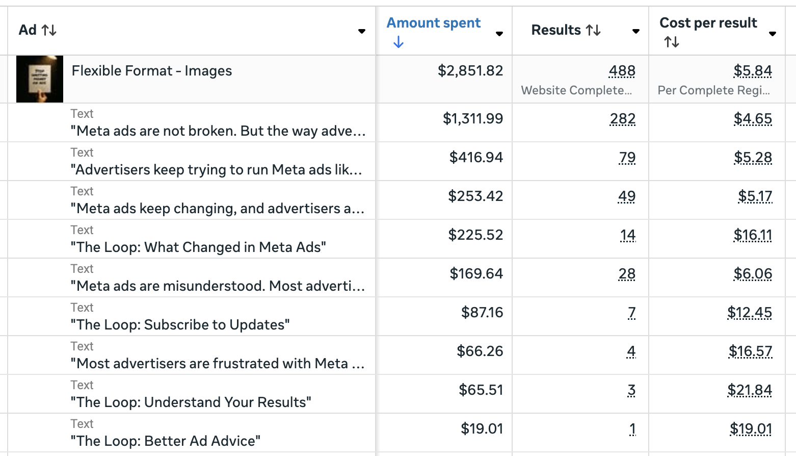 Once I do that, I’m not essentially nervous about discovering a successful major textual content or headline choice. However it’s nonetheless helpful to know what was used and the way every choice carried out. I can apply that studying to future adverts.