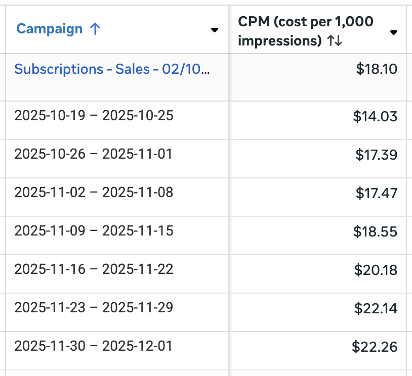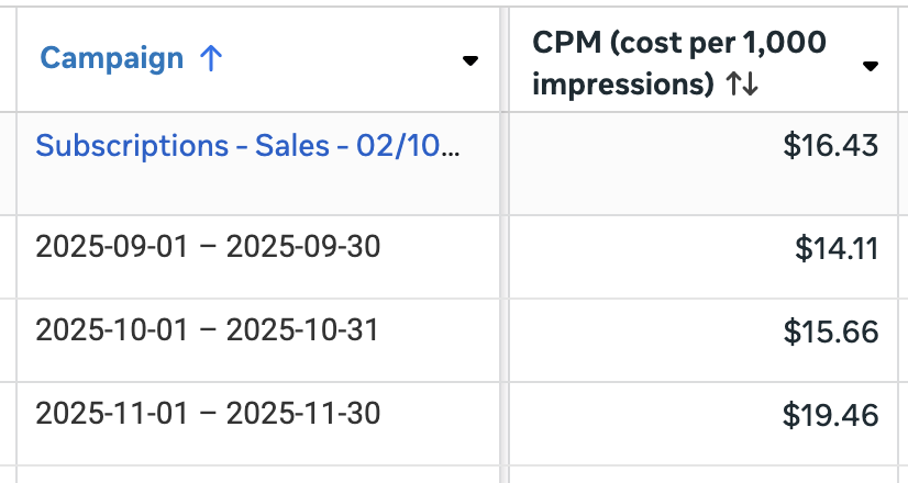 Right here’s a breakdown by month of CPM for a single marketing campaign from September by means of November…